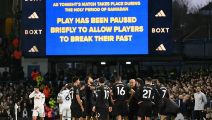 此时正值日落时分,这一分钟的短暂停歇是为了让正在斋月期间禁食的穆斯林球员能够及时进食和饮水,补充必要的体力。